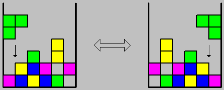 The reduced version investigated in this work was limited to six columns. The height of the playing area is unlimited since this limitation is only relevant for human players who are influenced by the reduced time constraint when the blocks pile up. Another deviation from the original game is the group of pieces in use. Following Melax the pieces are: