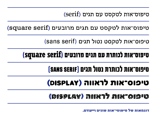 שוטף, ולטיפוסים המיועדים לכותרות או ראווה (display). בכל חלוקה ישנן חלוקות נוספות של טיפוסים