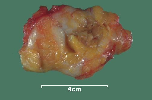 ![]() | During lactation, or at other times with dermatologic conditions that allow cracks and fissures to form in the skin of the nipple, infectious organisms can invade into breast and result in acute inflammation, and this may progress to breast abscess formation. The most common organism is Staphylococcus aureus. Organization with fibrous scar formation around the abscess can mimic a carcinoma on physical examination, by mammography, and grossly. |