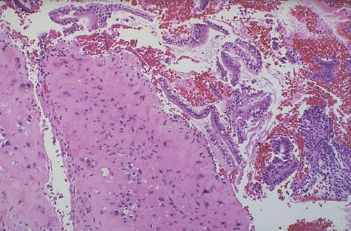 | This rare form of gestational trophoblastic disease (GTD) is a placental site nodule (placental site plaque). This lesion is composed of a small proliferation of intermediate trophoblast. It is of no real consequence, but it must be distinguished from other forms of GTD. |