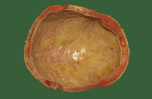 | Severe, chronic anemias (such as thalassemias and sickle cell anemia) can increase the bone marrow response to produce more RBC's. This drive for increasing erythropoiesis may increase the mass of marrow and lead to increase in the amount of marrow in places, such as the skull seen here, that it is not normally found. Such an increase in marrow in skull may lead to "frontal bossing" or forehead prominence because of the skull shape change. |