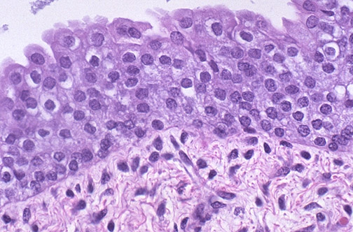 is seen here lining the bladder at high magnification. The most