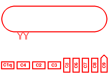 | Complement proteins are present in circulation and can be activated by a variety of mechanisms. Attached immunoglobulins can set off the "classic pathway" as shown above schematically. The complement cascade can generate active compounds such as C3b that functions as an opsonin, or C5a that attracts neutrophils. If the C5-9 complex (the "membrane attack complex") is generated, the cell to which the complex is attached can be lysed by perforation of its cell membrane. |