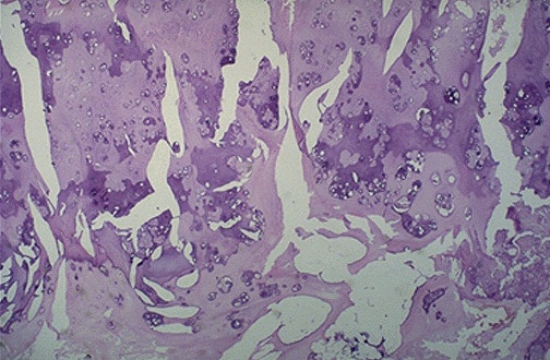 Most of the mass consists of poorly formed pale bluish cartilage.