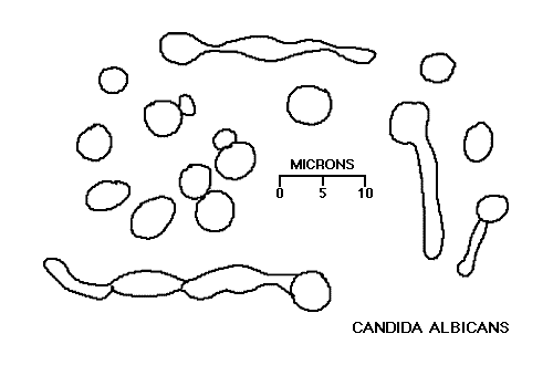 ![]() | Budding cells with short pseudohyphae and no branching