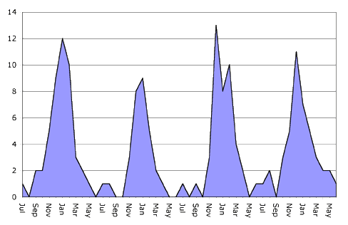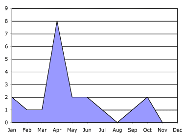 In the next example below, note the increase in reported cases for an infectious disease for one month, suggesting some specific event occurred, such as a food borne outbreak.