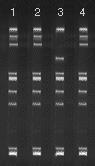 In the example below, isolates of E. coli have undergone DNA extraction following by restriction endonuclease digestion and gel electrophoresis to determine plasmid profiles. The profile of the organism in lane 3 is clearly different, and this may help explain patterns of antibiotic resistance. Though plasmid profile typing is not routinely performed, it can be an epidemiologic tool.