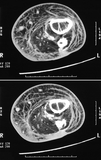This CT scan of the leg demonstrates a