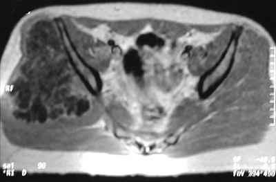 The pelvic MRI scan seen here reveals a