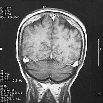 This is a normal coronal T1 weighted enhanced MRI scan demonstrating the