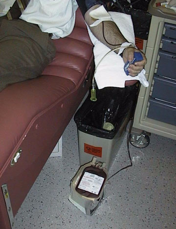 in a few minutes. The sealed plastic collection bag contains a blood preservative.