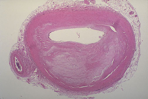This cross section of coronary artery demonstrates >75% narrowing, which would be associated with angina.