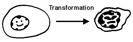 - Some factor, as discussed above, causes a cell to be transformed to a