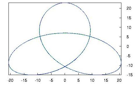 to the integration along the trefoil line. (see below for 10 revolutions).