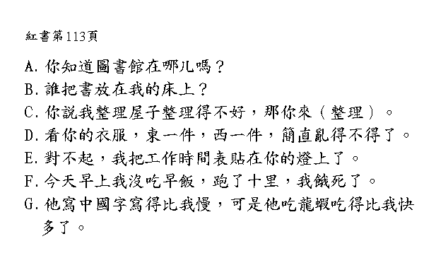 E .對不起,我把工作(gong1 zuo4)時間表(biao3)貼(tie1)在你的燈(deng1)上了。