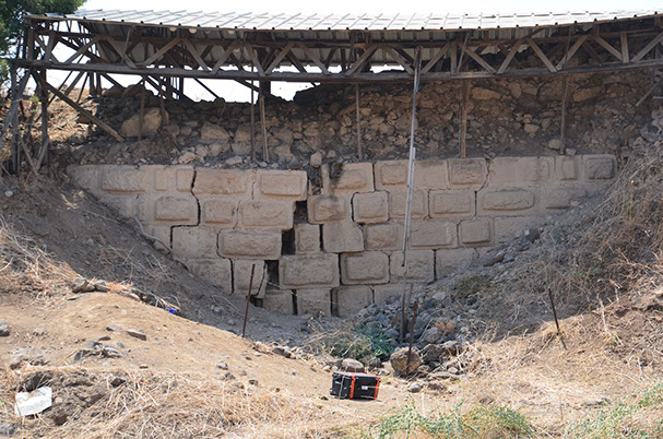 The archaeological Tell of Ateret (North Israel), constructed on the active Dead Sea Fault between the tectonic plates of Arabia and Sinai, was intermittently settled for over six millennia. A series of structures that were built in the Tell has been offset by earthquake ruptures on the DSF, provide a remarkable record of alternating construction and slip.