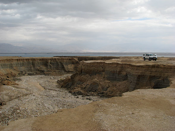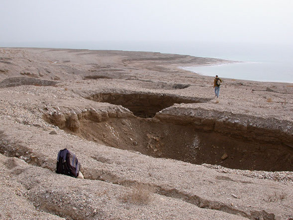 We use airborne laser scanning to characterize surface processes in response to the receding Dead Sea level, in particular the formation of shorelines, sinkholes, and channel incision in recently-exposed terrain.
