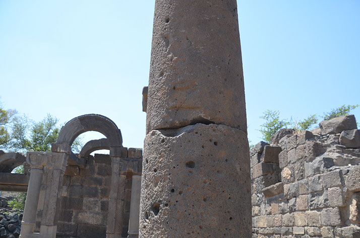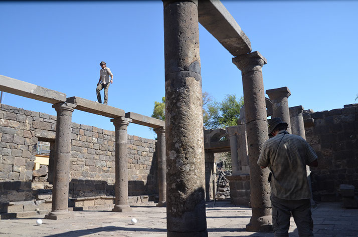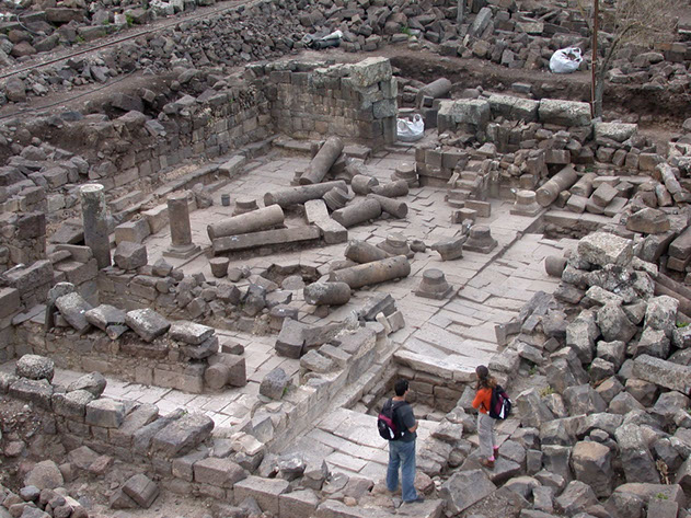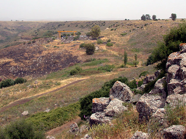 The Byzantine-to-Ummayad (6th–8th century) archaeological site of Umm-El-Qanatir, located 10 km east of the Dead Sea Transform (DST) in northern Israel. The site was damaged by an earthquake-induced landslide.